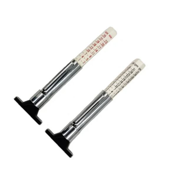 It is specially designed to measure the depth of the anti-slip tread of various wheels, so as to ensure the safety of tyre wear. Easy to use, simply push the probe straight up to the end, and then you can measure the black flat surface on the tyre pattern.